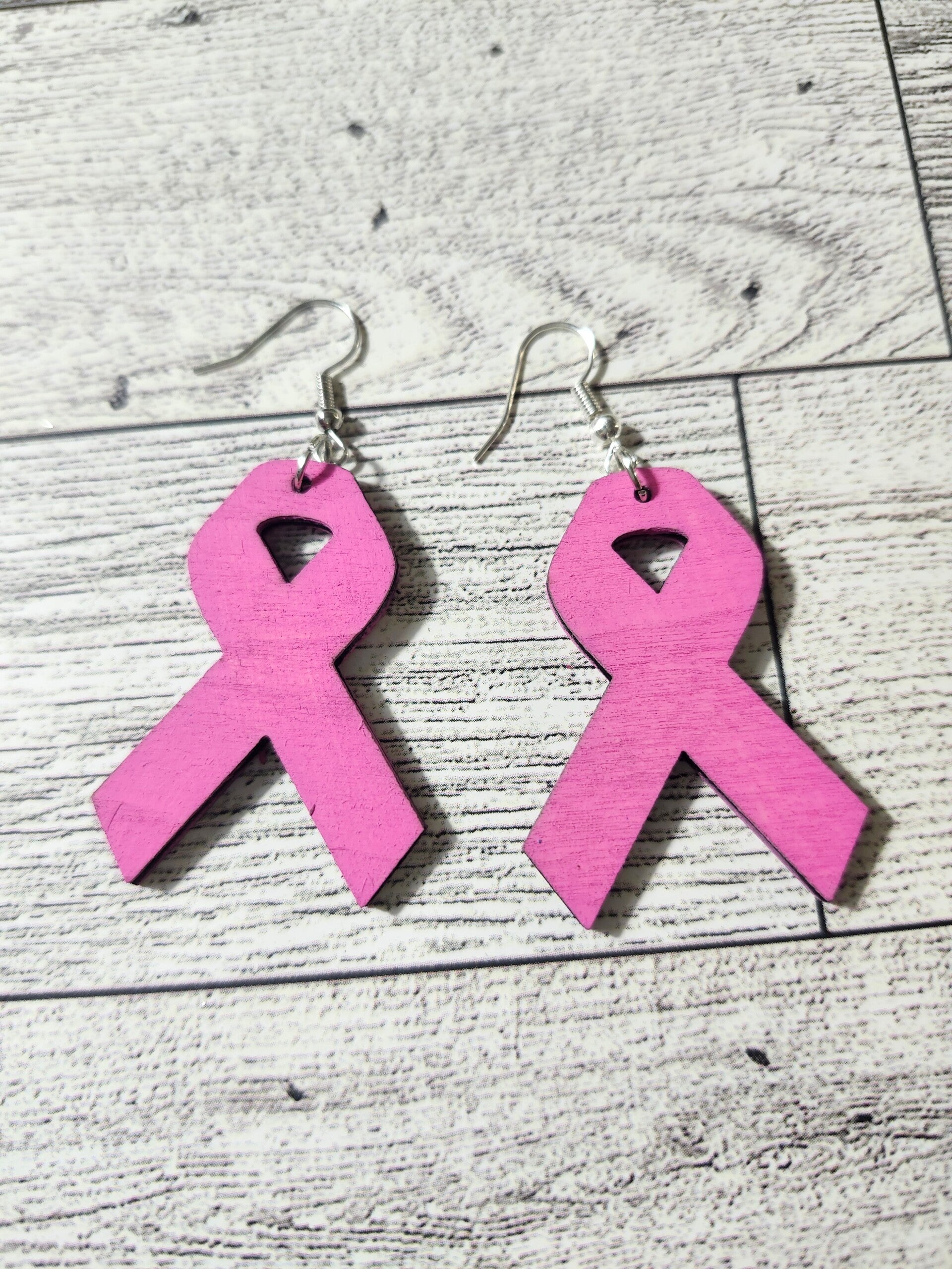 Elevate your accessory game with our beautiful Breast Cancer Awareness Earrings. Measuring 2 inches in length, these earrings are expertly laser cut and hand-painted, ensuring each pair is unique and eye-catching. Crafted with hypoallergenic plated silver or gold wires, they are perfect for sensitive ears and enjoy all-day comfort without heaviness and allowing you to wear them all day long.