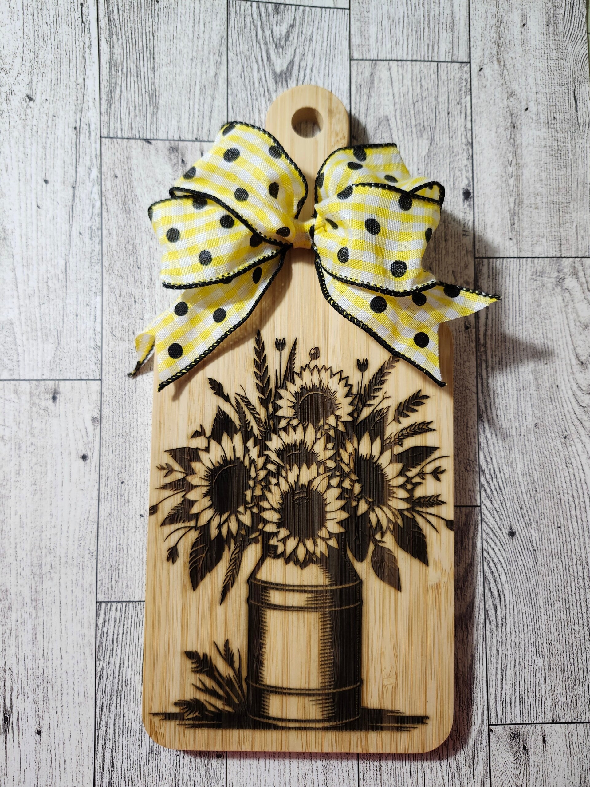 Order today and bring a touch of brightness and beauty to your space with this sunflower-themed cutting board!